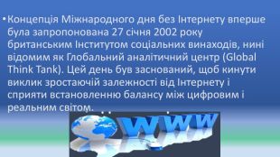 В останню неділю січня святкують Міжнародний день без інтернету (International Internet-Free Day) – це день, присвячений заохоченню людей по всьому світу відключитися від цифрового світу і відновити зв'язок з фізичним світом навколо них.