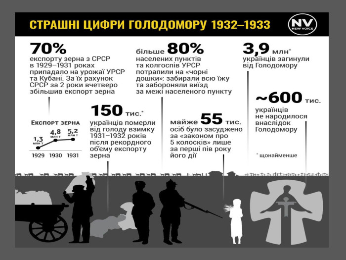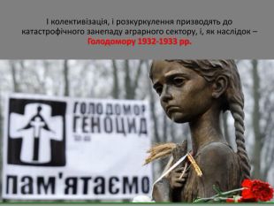 І колективізація, і розкуркулення призводять до катастрофічного занепаду аграрного сектору, і, як наслідок – Голодомору 1932-1933 рр.
