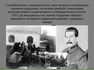 У хазяйновитих і заможних селян, яких комуністи зневажливо називали куркулями, очільники комбідів і комнезамів вилучали майно та депортували у найвіддаленіші куточки СРСР, де змушували у так званих «трудових таборах» працювати на користь радянської держави і трудового народу