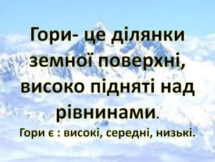 Презентація з ЯДС для 1 класу на тему :"Гори України".
