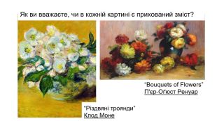 Художник може зображувати людину, пейзаж і натюрморт з метою задовольнити естетичну потребу (споглядання), і в такому випадку зображення є буквальним. А може використати прихований зміст(міфи, легенди т.д), композицію та колір для створення відповідного підтексту та емоційного настрою - в такому випадку композиція містить метафору.