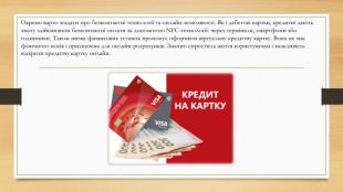 Переваги та недоліки використання кредитних карток. Ми розглянули особливості кредитних карток, проте варто ще виділити основні плюси та мінуси цього банківського продукту. Доступ до додаткових коштів. Можливість мати фінансову подушку на випадок непередбачених витрат. Це дозволяє покрити термінові потреби, не звертаючись до мікропозик. Зручність кредитної картки та безпека. Оплата онлайн значно зручніша за готівку, особливо для покупок в інтернеті або подорожей. У разі втрати або крадіжки картки її можна швидко заблокувати, а кошти будуть захищені банком. Пільговий період без відсотків. Користуватися грошима банку можна безплатно протягом 30–60 днів, що є величезним плюсом, якщо ви встигаєте повернути борг вчасно. Бонуси та привілеї. Кешбек, знижки, бонусні бали та милі суттєво заощаджуватимуть ваші кошти у разі регулярного використання кредитної картки. Формування кредитної історії. Своєчасне погашення заборгованості позитивно впливає на вашу кредитну історію. Це відкриває двері до більших кредитів (наприклад, іпотеки або автокредиту) та більш вигідних умов у майбутньому. Використання кредитної картки за кордоном. Це незамінний засіб розрахунку під час подорожей. Ви можете оплачувати товари та послуги у будь-якій країні, уникаючи необхідності обмінювати готівку. Можливість відкрити онлайн. Сучасні технології дозволяють отримати кредитну картку онлайн, без візиту до відділення банку. Переваги кредитної картки