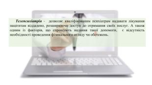Телемедицина (від грец. tele — дистанція, лат. meder — лікування) — це галузь медицини, яка використовує телекомунікаційні й електронні інформаційні (комп’ютерні) технології для забезпечення медичної допомоги на відстані. За визначенням МОЗ: телемедицина — це надання медичних послуг у тих випадках, коли відстань між медичним працівником і пацієнтом є критичним чинником.