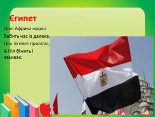 Єгипет. Далі Африка жарка. Вабить нас із далека. Ось Єгипет пролітає,А Ніл біжить і зазиває: