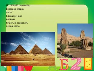 До пірамід і до пісків. В історію старих часів.І фараони вже рядами. Стають й проходять перед нами.