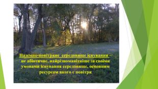 Наземно-повітряне середовище існування – це абіотичне, найрізноманітніше за своїми умовами існування середовище, основним ресурсом якого є повітря