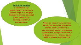 Вологість повітря є чинником, що характеризується вмістом водяної пари в атмосфері. Наявність вологи в повітрі різко змінює його теплопровідність і теплоємність. Через те, спеку і холод за умов високої вологості витримувати значно важче. Вологість у наземно-повітряному середовищі коливається в широких межах, а дефіцит вологи – це одна з його найістотніших особливостей.
