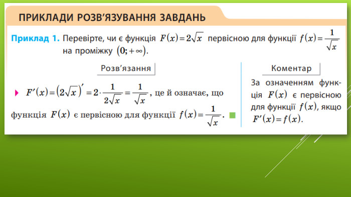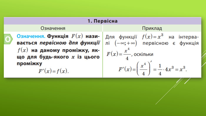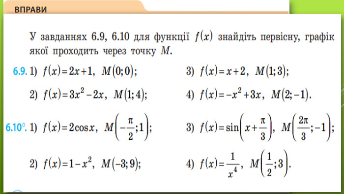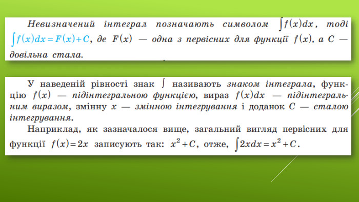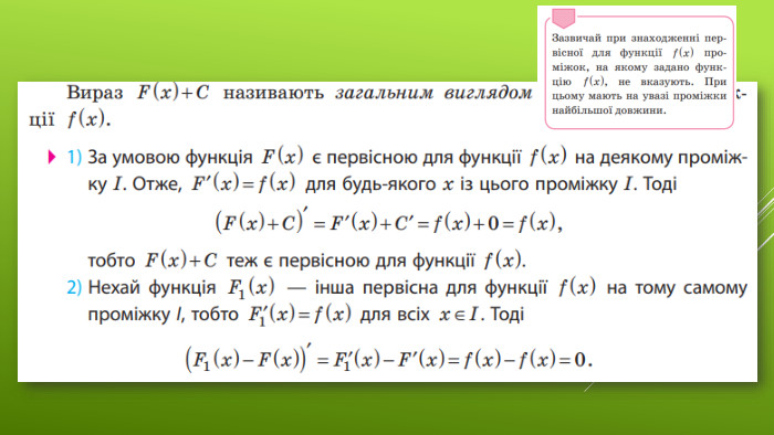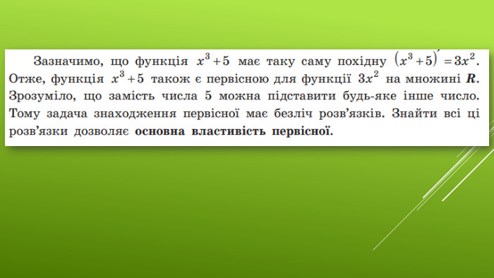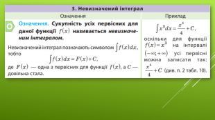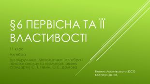 §6 Первісна та її властивості11 клас. Алгебра. До підручника: Математика (алгебра і початки аналізу та геометрія, рівень стандарту) Є. П. Нелін, О.Є. Долгова Вчитель Лосинівського ЗЗСОКостюченко Н. В.