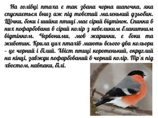 Пташки сміливі прилетілиІ на гілках рядочком сіли. Що за гості зимові?Червоногруді ….style.font. Family