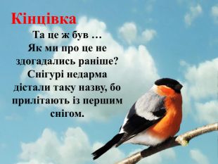 Кінцівка. Та це ж був …Як ми про це не здогадались раніше? Снігурі недарма дістали таку назву, бо прилітають із першим снігом.