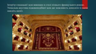 Одеський Оперний театр (1884-1887)Конкурс на проектування Оперного театру Північної Пальміри імперії виграли відомі італійські архітектори Фердинанд Фельмер і Герман Гельмер. Але будівництвом театру безпосередньо займались одеські архітектори Олександр Бернандацці, Фелікс Геонсіоровський, Юрій Дмитренко. Будівництво тривало три роки і завершилось в вересні 1887 р. Зовнішній вигляд театру виконано у стилі венеціанського бароко.