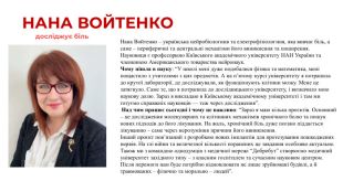НАНА ВОЙТЕНКОНана Войтенко – українська нейробіологиня та електрофізіологиня, яка вивчає біль, а саме – периферичні та центральні механізми його виникнення та поширення. Науковиця є професоркою Київського академічного університету НАН України та членкинею Американського товариства нейронаук. Чому пішла в науку: “У школі мені дуже подобалися фізика та математика, мені пощастило з учителями з цих предметів. А на п’ятому курсі університету я потрапила до крутої лабораторії, де досліджували, як функціонують клітини мозку. Мене це затягнуло. Саме те, що я потрапила до дослідницького університету, і визначило мою наукову долю. Зараз я викладаю в Київському академічному університеті і там ми готуємо справжніх науковців — теж через дослідження”. Над чим працює сьогодні і чому це важливо: “Зараз я маю кілька проєктів. Основний – це дослідження молекулярних та клітинних механізмів хронічного болю та пошук нових підходів до його лікування. На жаль, хронічний біль дуже погано піддається лікуванню – саме через нерозуміння причини його виникнення.Інший проєкт пов’язаний з розробкою нових імплантів для протезування пошкоджених нервів. На тлі війни та величезної кількості поранених це завдання особливо актуальне. Також ми з командою однодумців з медичної мережі “Добробут” створюємо медичний університет західного типу – з власним госпіталем та сучасним науковим центром. Після перемоги нам буде потрібно відновлювати не лише зруйновані будівлі, а й травмованих – фізично та морально – людей”.досліджує біль