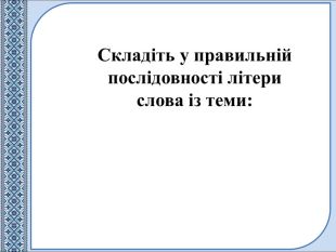 Складіть у правильній послідовності літери слова із теми: