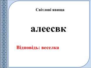 алеесвк. Відповідь: веселка. Світлові явища