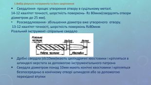 ПЛАН: 1.ВИБІР РІЖУЧОГО ІНСТРУМЕНТА ТА ЙОГО ЗАКРІПЛЕННЯ. 2. ЗАКРІПЛЕННЯ ЗАГОТОВОК. 3. ПРОЦЕС СВЕРДЛІННЯ І РОЗСВЕРДЛЮВАННЯ. 4. РЕЖИМИ РІЗАННЯ.