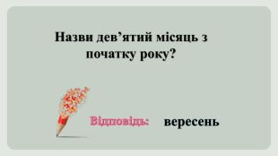 Назви дев’ятий місяць з початку року?Відповідь:вересень