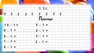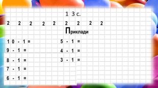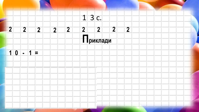 1 3 с. 222222222 Приклади1 0 - 1 = 9 - 1 = 8 - 1 = 7 - 1 = 6 - 1 = 5 - 1 = 4 - 1 = 3 - 1 =