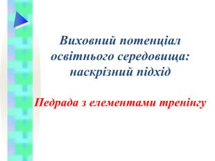 Педрада-тренінг «Виховний потенціал освітнього процесу: наскрізне виховання» спрямована на усвідомлення ролі кожного педагога у формуванні цінностей, компетентностей і особистісного розвитку учнів. Під час заходу розглядаються сучасні підходи до інтеграції виховної складової у всі предмети та види діяльності, обговорюються ефективні методи формування громадянської, моральної та соціальної відповідальності здобувачів освіти. У форматі тренінгу педагоги беруть участь у практичних вправах, обміні досвідом і спільному пошуку інструментів реалізації наскрізного виховання в освітньому процесі.