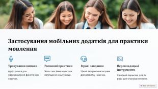 Застосування мобільних додатків для практики мовлення Тренування вимови. Аудіозаписи для удосконалення фонетичних навичок. Розмовні практики. Чати з носіями мови для поліпшення комунікації. Ігрові завдання. Цікаві інтерактивні вправи для розвитку навичок. Перекладацькі інструменти. Швидкий переклад слів та фраз для опанування мови.