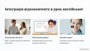 Інтеграція відеоконтенту в урок англійської Автентичні діалоги. Відео з носіями мови для сприйняття живої мови. Пояснення правил. Анімовані відео для наочного вивчення граматики. Онлайн-курси. Повноцінні уроки англійської мови у відеоформаті.
