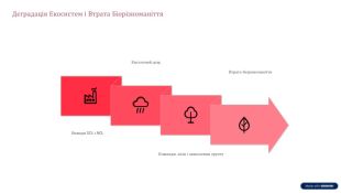 Деградація Екосистем і Втрата Біорізноманіття. Викиди SO₂ і NO₂Кислотний дощ. Пошкодж. лісів і закислення ґрунту. Втрата біорізноманіття. Кислотні дощі, спричинені викидами SO₂ та NO₂, прямо руйнують лісові масиви, закислюють водойми та ґрунти, впливаючи на харчові ланцюги. Зміна клімату та токсичність призводять до масової втрати біорізноманіття. Щороку скорочується площа лісів, які покривають близько 30% суші та є критичними для поглинання CO₂.