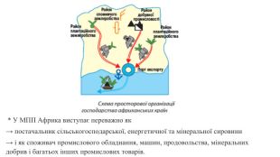 * Особливості розміщення промислового виробництва в Африці зумовлені колоніальним минулим регіону. * Розміщення багатьох промислових центрів у країнах, що мають вихід до океанів та морів, полягають у тому, що виникли вони як портові міста й розвивалися як місця перевалки, обробки й транспортування сировини із центральних частин колишніх колоніальних володінь до країн-метрополій.