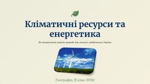 Кліматичні ресурси та енергетика. Географія, 8 клас НУШЯк використати енергію природи для сталого майбутнього України