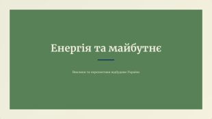 Енергія та майбутнєВиклики та перспективи відбудови України