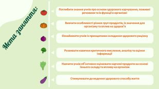 Здорове харчування – це основа фізичного та психічного благополуччя людини. У цій презентації розглянуто принципи збалансованого раціону, користь різних груп продуктів, а також негативний вплив нездорової їжі на організм. Презентація допоможе сформувати уявлення про те, як правильно харчуватися, щоб підтримувати здоров’я, енергію та гарне самопочуття.