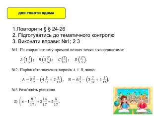 1. Повторити § § 24-262. Підготуватись до тематичного контролю3. Виконати вправи: №1; 2 3 ДЛЯ РОБОТИ ВДОМА