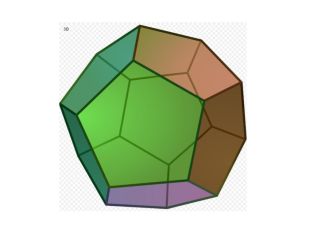 ДОДЕКАЕДРДодекаедр – це такий правильний многогранник, грані якого – правильні п'ятикутники і в кожній вершині сходиться по 3 ребра. Кількісні характеристики: Вершин – 20 Ребер – 30 Граней - 12