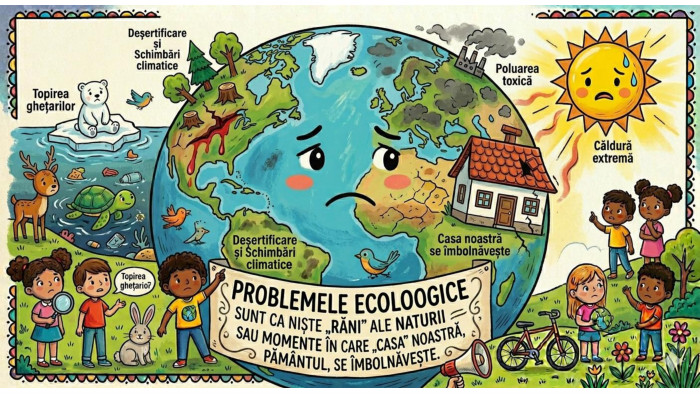 Презентація на тему "Що таке екологічні проблеми" для 4-го класу з предмету Я досліджую світ на румунській мові для румуномовних шкіл за підручником Гілберг.