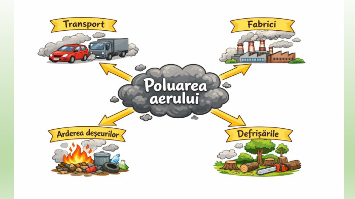 🌿 FIȘĂ DE LUCRU: „CINE POLUEAZĂ AERUL?” 🌿Nume elev: _________________________Instrucțiuni: Citește descrierea fiecărui factor care poluează aerul, apoi folosește spațiul liber din casetă pentru a desena acel lucru, așa cum ți-l imaginezi tu.1. Transportul (Mașinile și Avioanele)Multe mașini, camioane și avioane folosesc combustibili care scot fum pe țeava de eșapament sau prin motoare. Acest fum conține gaze care fac aerul greu de respirat.2. Fabricile și Uzinele. Fabricile mari au coșuri uriașe prin care eliberează fum gri sau negru în atmosferă atunci când produc obiectele pe care noi le cumpărăm.3. Arderile de deșeuri (Gunoaiele)Atunci când oamenii dau foc resturilor de plastic, frunzelor uscate sau gunoaielor în curte sau pe câmp, aerul devine plin de cenușă și substanțe toxice.4. Încălzirea locuințelor. Iarna, sobele care ard cărbuni sau lemne scot fum prin coșurile caselor. Dacă sunt foarte multe case la fel, aerul din localitate devine irespirabil. Provocare de final: În spațiul de mai jos, desenează o SOLUȚIE (ceva ce putem face noi ca să păstrăm aerul curat, de exemplu: mersul pe bicicletă sau plantarea unui copac).