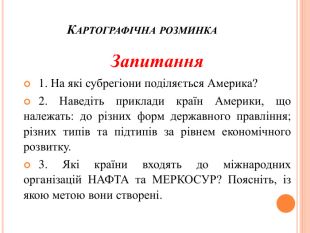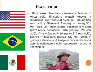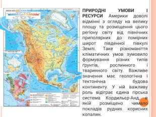 Презентація містить цікавий матеріал, що дозволяє оцінити первинний сектор економіки Америки. Формує поняття про забезпеченість регіону корисними копалинами. природними та сільськогосподарськими ресурсами. Формує зв'язок між первинним і вторинним секторами економіки. Дає можливість оцінити населення регіону, його склад, чисельність. та зайнятість .