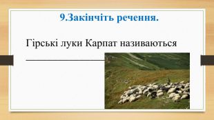 9. Закінчіть речення. Гірські луки Карпат називаються ______________________