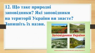 12. Що таке природні заповідники? Які заповідники на території України ви знаєте? Запишіть їх назви.