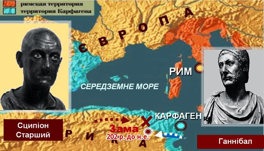В 202р. к н.е. в битве под Замами (на юге от Карфагена) римляне одержали решающую победу. Публий Корнелий Сципион, который выступал на стороне римлян одержал победу. Самому Ганнибалу повезло убежать. Он вынужден был искать защиты у царя сирийского.