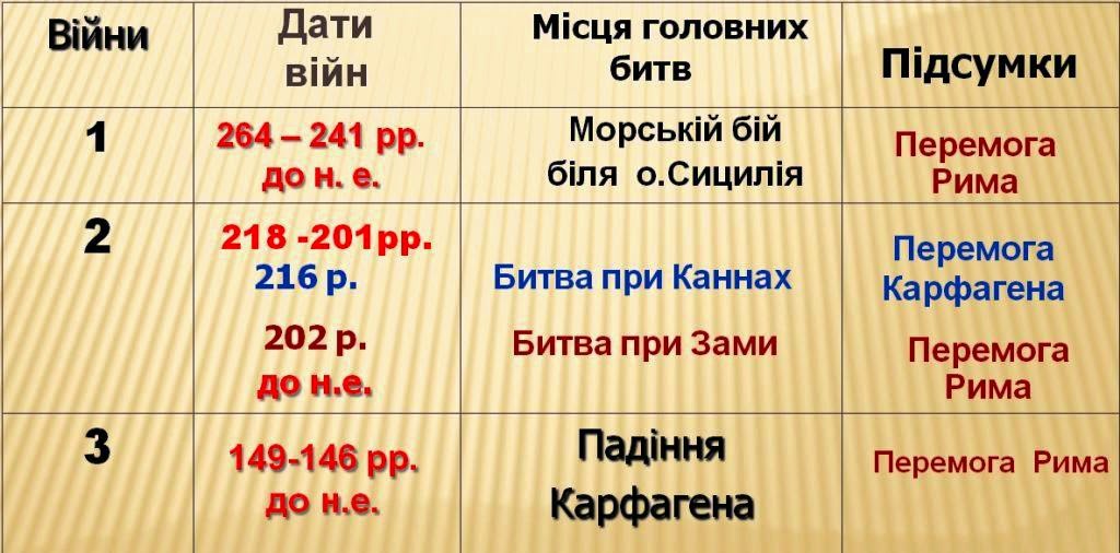 Таблица 8 Результаты Пунических войн