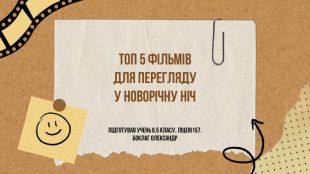 ТОП 5 ФІЛЬМІВ ДЛЯ ПЕРЕГЛЯДУУ НОВОРІЧНУ НІЧПІДГОТУВАВ УЧЕНЬ 6,5 КЛАСУ, ЛІЦЕЮ157. БОКЛАГ ОЛЕКСАНДР