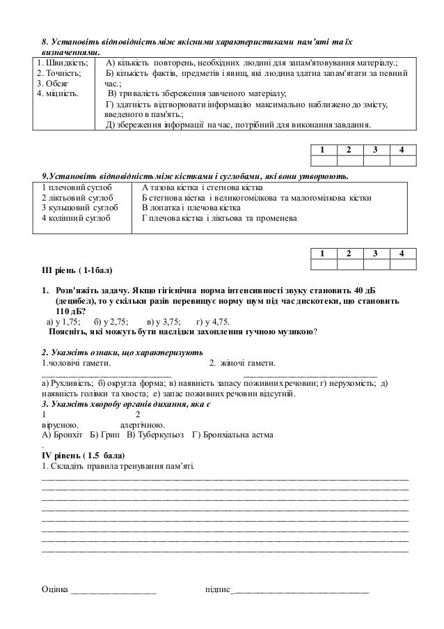 Контрольна робота по біології (8 клас)