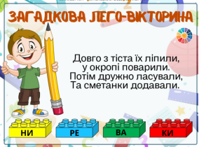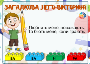 Обладнання: наочність, картки із завданнями, цеглинки Lego, мультимедійна дошка.