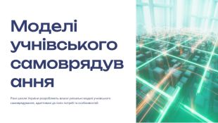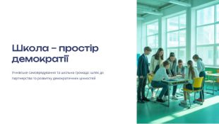 Презентація з Громадянської освіти 10 клас з теми "Школа – простір демократії". Презентація містить поняття учнівського самоврядування та шкільна громада: шлях до партнерства та розвитку демократичних цінностей, цінності учнівського самоврядування, Права та обов'язки учня в самоврядуванні, Моделі учнівського самоврядування тощо