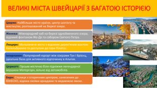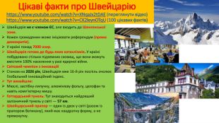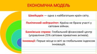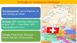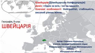 Презентація до уроку географії у 9-му класі з теми "Місце країни у світі:Швейцарія", характеристика за типовим планом. Автор: Багінська Сніжанна Францівна,
