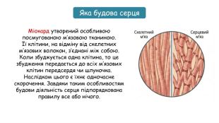 Яка будова серця. Міокард утворений особливою посмугованою м’язовою тканиною. Її клітини, на відміну від скелетних м’язових волокон, з’єднані між собою. Коли збуджується одна клітина, то це збудження передається до всіх м’язових клітин передсердя чи шлуночка. Наслідком цього є їхнє одночасне скорочення. Завдяки таким особливостям будови діяльність серця підпорядкована правилу все або нічого.