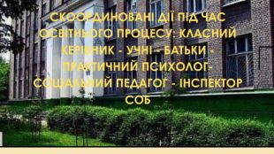 СКООРДИНОВАНІ ДІЇ ПІД ЧАС ОСВІТНЬОГО ПРОЦЕСУ: КЛАСНИЙ КЕРІВНИК - УЧНІ - БАТЬКИ - ПРАКТИЧНИЙ ПСИХОЛОГ- СОЦІАЛЬНИЙ ПЕДАГОГ - ІНСПЕКТОР СОБ