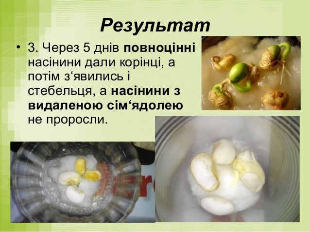 Результат 1. Склянка – насіння не змінилось, проростання не відбулось.