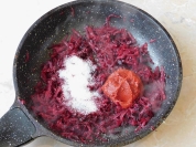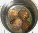 Спечені або варені буряки обчищають, нарізують соломкою. Картоплю варять у шкірочці, обчищають, нарізують скибочками. Чорнослив варять з цукром, охолоджують.