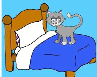 Where is a cat? It is __the bed