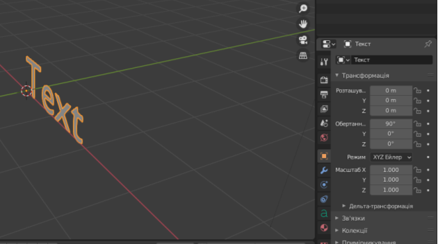 Текстовий 3D-об'єкт під назвою Текст можна додати скориставшись пунктом меню