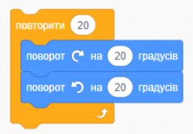 На скільки градусів буде виконано поворот в результаті виконання наступних команд?